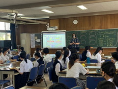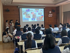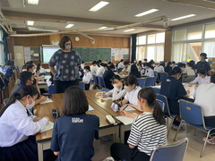 ALTによる外国事情の授業体験と、国際教養科2年生による国際教養科紹介を通して、中学生たちは高校生活のイメージをよりリアルに持つことができている様子でした。
