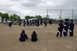 前日からの雨で開催が心配されましたが、当日は若干の雨交じりの中、各クラス、班、学年の士気をあげて10人11脚、大縄跳び、障害物競争、班対抗リレー、学年対抗リレーwith先生の5種目に取り組みました。