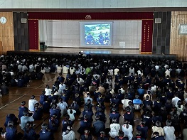 対面式では学友会長から、新入生を歓迎する挨拶がありました。対面式の後に行われた班活オリエンテーションでは、各班が動画や実演などを交えた班活動の紹介を行いました。