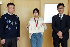 書道班3年生の山邊さんが全国書道展で大東学園理事長賞を受賞しました。 大学入試の勉強で忙しい中、集中して書道に取り組み高校3年間の集大成といえる作品が出来たそうです。 ご指導を頂いた顧問の先生をはじめ、お世話になった人たちに感謝して卒業後も精進したいと抱負を語ってくれました。