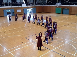 本日の放課後、第1体育館にて発表会がありました。ギャラリーから多くの生徒と教職員が鑑賞しました。迫力のある演奏とパレードに、感動を口々にしていました。
