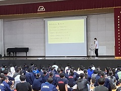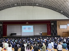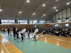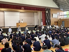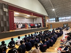 令和5年度の学友会の活動方針と予算を審議する学友会総会が行われました。2・3年は体育館、1年は教室でオンライン参加となりましたが、久々の参集しての学友会総会となりました。本年度の学友会活動計画および予算案等が可決され、いよいよ染谷祭に向けて全校が動き出していくことになります。 総会終了後、春休みの期間などを利用して海外留学を経験した生徒たちによる報告会が行われました。アメリカ、カンボジア、マレーシア、台湾など行先はさまざまでしたが、いずれの発表にも海外留学の魅力があふれていました。 報告会終了後は県大会に出場する班活の壮行会を行いました。壇上で各班活の代表が県大会への熱い思いを語っていました。久々に全校で校歌を斉唱して壮行しました。