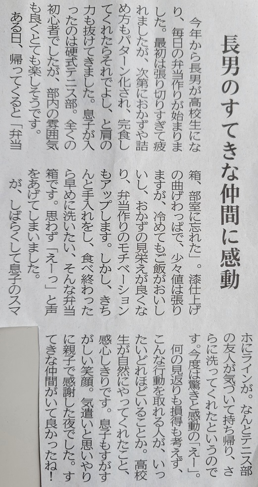 本人の了承を得て、お名前は伏せさせていただき本校のホームページにも掲載させていただきました。