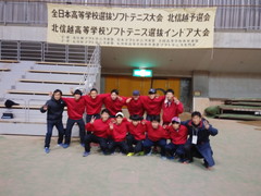 1月14日、15日に石川県小松市こまつドームで開催された北信越選抜大会に団体戦・個人戦で参加してきました。 個人戦は小林新太・倉島康介組が新潟県関根学園のペアと対戦し、残念ながら2-4で敗退しました。 14日に行われた団体戦ではBリーグ(各県2位のチームのリーグ戦)で戦い、石川・金沢学院大附属には②-1で勝利、 富山・高岡商業には1-2で惜敗したものの新潟・中越には③-0で勝利、最終戦の福井・藤島にも②-1で勝利し3勝1敗という成績でした。 3チームが同率で並び、更に勝敗数も同じで相互の対戦での得失ゲーム数でわずかに及ばずBリーグの1位には慣れませんでした。 (リーグ1位であれば全国選抜出場権をかけての代表決定戦に進むチャンスでした。)そして、3年ぶりの声出し応援可で有観客開催という大会であり、 マスク着用での大きな声を出した応援の班員や駆けつけてくださった保護者の皆さんも一緒に戦うことができました。 参加した選手、班員は他県のレベルの高いプレー、戦いに大いに刺激を受け、春の戦いに向けて意欲を高めています。 この経験を生かして、新3年生・2年生となる春の総体予選で目標を達成できるように頑張りたいと思います。