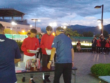 翌8日の個人戦では出場8ペア全てが勝利を挙げ、5ペアがトーナメントに進み、村中滉・横関佑紀組(共に2年)が決勝まで勝ち進み、決勝では惜しくもファイナルで惜敗でしたが、 準優勝しました。