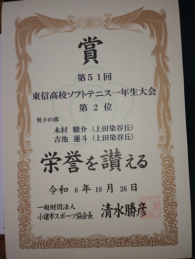 10月26日に臼田で行われた1年生大会では木村駿介・吉池蓮斗組が決勝まで勝ち上がり、準優勝。1月に行われる県大会に出場します。