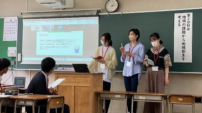 記念講演では、長野県立こども病院の医師、南先生より「国境なき医師団日本」のお話をお聞きしました。その後、4つの分散会に分かれ、各高校の研究発表と意見交換が行われました。本校の3年生の坂口怜美さん、関ひなたさん、齋藤蒔富羽さんが、分散会Ⅱ「地域の課題から地域創生を考える」に参加し、「ぱんとりーソメヤprojectの活動について」発表しました。地域や高校の枠を超え、高校生の力で地域を元気にしたい!という思いが繋がり、活動の苦労話ややりがいを共有し合い、新しいアイディアをもらい、時間が足りないくらい盛り上がっていた姿が印象的です。ここでの繋がりを大切に、また何かみんなでやりましょう!と誓い合い、笑顔での解散となりました。