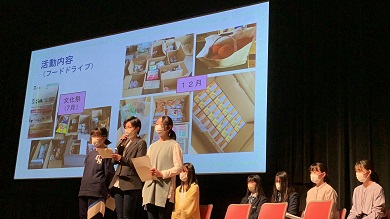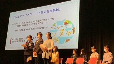 4月27日(木)上田文化会館ホールで、上田市少年補導委員会が開かれました。その全体研修会で地域とつながる高校生の活動「おけまる食堂実行委員会における各高校のSDGsアクション」の様子が報告されました。本校の3年生も探究学習「ぱんとりーソメヤproject」の様子を紹介しました。
